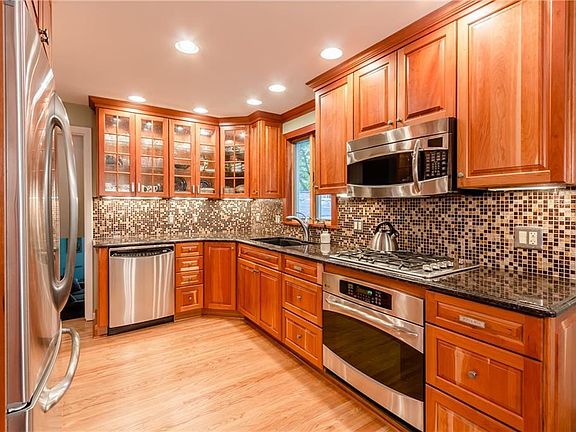 SEEING IS BELIEVING*TOTALLY RENOVATED INTERIOR WITH HARDWOODS, WINDOWS, UPDATED BATHROOMS & A STUNNING GRANITE KITCHEN WITH GLASS FACED CHERRY CABINETRY, UPGRADED SS APPLIANCES & CUSTOM MOSAIC TILE BACKSPLASH*GAS FIREPLACED LIVING ROOM WITH FRONT BAY WINDOW + A HUGE VAULTED FAMILY ROOM W/ GAS WOODSTOVE, EXTENSIVE WINDOWS*ELEGANT WINDOW TREATMENTS THROUGHOUT*2008 FURNACE, 2015 HOT WATER TANK* TREED, PRIVATE YARD*GREAT VALUE FOR THIS MINT CONDITION HOME*