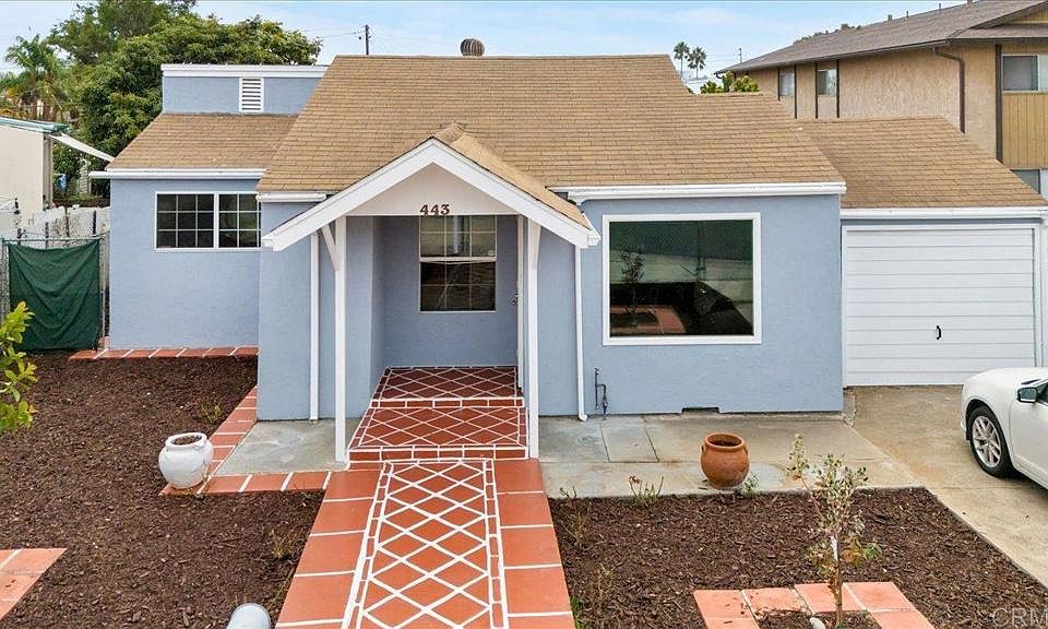 Welcome to this charming 2-bedroom, 2-bathroom single-family home nestled on a quiet cul-de-sac in Chula Vista with no HOA or Mello-Roos fees. Built in 1949, this home exudes classic 1940s charm while boasting fresh interior and exterior paint. Situated on a massive lot with alley access, this property offers the potential to be a great home and a great income potential possibility. There is plenty of space to add an ADU or design your dream outdoor space. As you make your way inside, you'll be greeted by a warm family room that flows seamlessly into the kitchen, where you'll find ample cabinet and pantry space to accommodate all your culinary needs. Down the hallway, the first bedroom and bathroom provide a cozy retreat for family or guests, which is perfect for entertaining. The primary suite is a private oasis, featuring an en-suite bathroom and a massive walk-in closet, along with direct access to the backyard – ideal for unwinding after a long day. Conveniently located off the kitchen, the single-car garage offers laundry hookups, extra storage space, and backyard access. The expansive backyard boasts a detached structure that can be used for storage or as an additional garage space. This home is located near parks, schools, shopping, restaurants, and just minutes from freeway access, Silver Strand Beach, Coronado Island, and the vibrant Chula Vista Bayfront which is expected to increase the value of all nearby properties. Move-in ready, this property offers both comfort and future potential. Don't miss this opportunity!