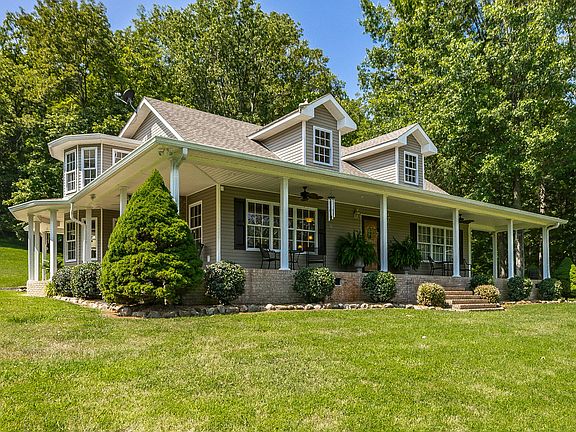 This property offers country living at it's absolute best! Sitting on 8.14 beautiful acres is a meticulously-maintained, 3 bed, 2.5 bath home with picturesque wraparound porch and attached 2-car garage. Also Includes a 1,500 sq ft workshop with water, electric & gas. Lots of updates throughout including a recently renovated kitchen with dual sinks, granite countertops, gas oven, stand alone ice-maker and much more. (More acreage available. Contact Agent for details)