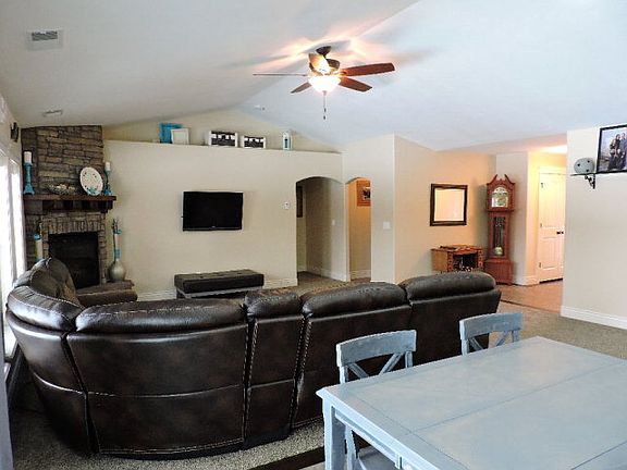 LOCATION LOCATION LOCATION!!! You will fall in love where this property is located and really enjoy all the wildlife that wander through. This spacious home features a large kitchen/great room with lots of natural light and beautiful rocked propane fireplace. Beautiful kitchen cabinets with center island, pantry, granite and all appliances included. The dining area leads to a large covered patio with wooded back yard. Master suite includes tray ceiling, walk in closet, jetted tub, tiled shower with glass surround and double sink vanity. The additional two bedrooms and bath are on the other side of the home for added privacy. An incredible home with all the upgrades, granite, tile floors, vaulted ceilings, walk-in closets,and large garage. The 36x50 heated shop comes with shelves, workbench and 6in fiber concrete floors.