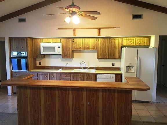 Corner lot in old Florida town of Crescent City. Open floor plan Home, 1981 sq ft, Vaulted ceilings, Fireplace, 3 Bedroom, 1 1/2 Bathroom, Carport and Open Porch.