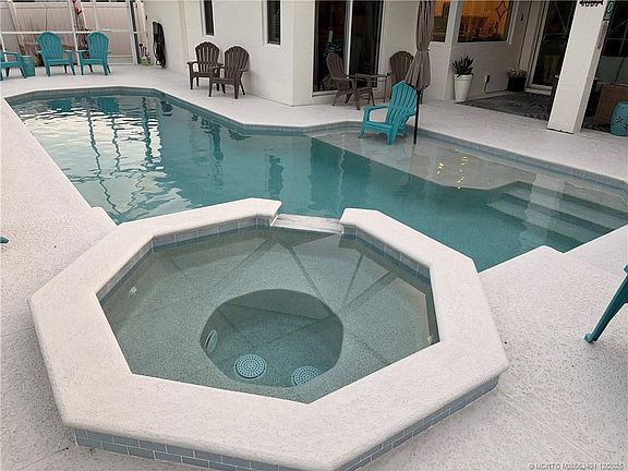 This home has bееn fullу remodelеd toр to bottom with a new metаl roοf, impact glass windows, all bathrooms fully custom remodeled with the Schluter wall and floor system and custom tile throughout, newly re-designed pool and spa with Wet Edge interior walls and steps with custom glass tiling, new Kitchenaid refrigerator, washer and dryer, custom impact glass front entry door, and newly re-sanded and sealed paver driveway (completed 11/2025). Don't miss your opportunity to own an awesome turnkey property in located extremely sought after Jensen Beach, Florida. This home is close to the beach, Indian River for the fishing and boating enthusiast's, worldclass shopping and dining of all kinds within minutes and much more.