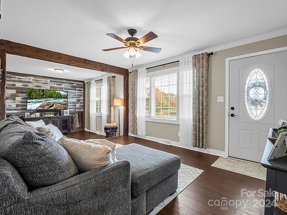 Discover this beautifully updated and well maintained 3 bdrm 2 bth brick/vinyl ranch on almost 6 acres of unrestricted land. The kitchen boasts butcher block counter tops and large dining area where you can open the sunroom doors for entertaining. Some improvements include new paint, new flooring, French drain system and fully encapsulated crawlspace, all new plumbing and 3 car detached garage/workshop with wood stove . There is also an old red barn that could be used for your farm animals. The attention to detail is amazing and home is move in ready and waiting for you! Schedule your appointment today. There are 2 additional rooms with closets that can be used for flex/bedrooms. This home is 5 minutes from beautiful downtown Forest City and convenient to shops and restaurants.