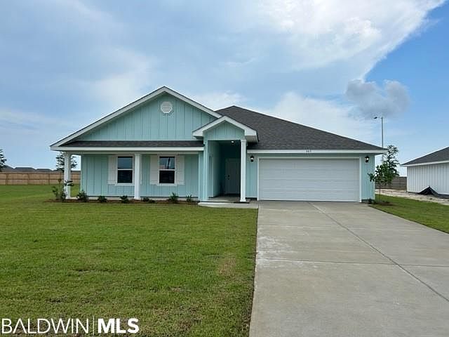RALEY FARMS PHASE 2! Raley Farms is located within 15 minutes of Gulf Shores sandy white beaches! Located off of County Rd 8, this large lot DENTON floorplan with a front porch offers a ton of useable space. This open floor plan 4-bedroom, two bath home features granite throughout the home, luxury vinyl plank flooring throughout, garden tub, walk in shower, huge walk-in closet in the primary bedroom, LED lighting package, gorgeous white cabinetry, and is to be built to Gold Fortified Home TM Certification, which may save the buyer on homeowner's insurance. The home will also include a smart home package. Raley Farms also features a private pool area surrounded by big oak trees and backing up to a little pond for maximum relaxation. The DENTON plan also includes a wide covered back porch area for catching sunsets or entertaining guests. ***Pictures are of similar home and not necessarily of subject property, including interior and exterior colors, options, and finishes.*Home is under construction. lot 110. Estimated completion is June 2023.