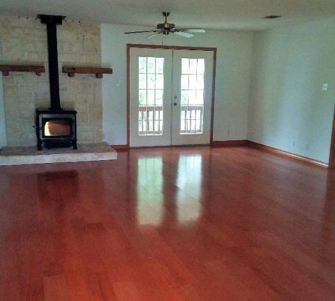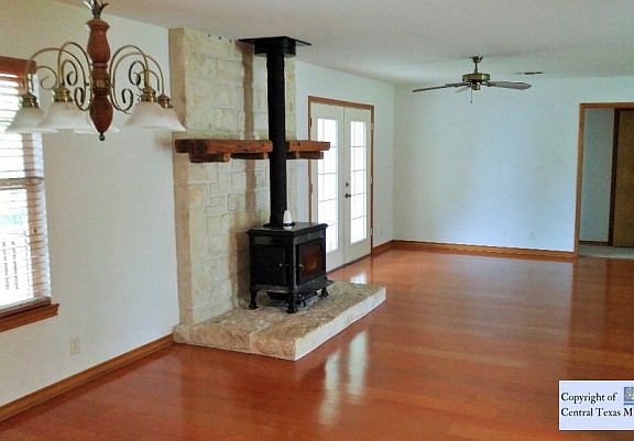 Must see!! Well maintained, one story home on 1.01 acres in beautiful Mystic Shores. Surrounded by mature oak trees and country living! Sit by the wood burning fire place or enjoy the country view by opening French doors that lead out to nice covered patio and wooden deck. Wood flooring in living and dining rooms. Large eat in kitchen with silestone counters, Jenn-Aire stove w/griddle. Master bedroom has access to back patio and features a private master suite with multiple closets. Oversized two-car garage is attached plus a detached garage/workshop perfect for 2+vehicles including a boat.