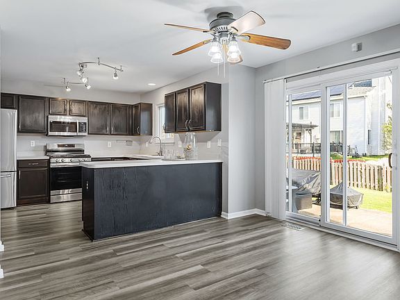 Move into your new home just in time for the summer! Welcome to 443 Rachel Circle, a beautifully updated 4 bedroom, 2.5 bath home in the heart of Lakewood Falls of Romeoville. There is nothing to do but move right in as there have been countless updates and has been meticulously maintained. As you enter, you'll be greeted by the formal living room on your right and the dining room on your left, leading you into the spacious eat-in kitchen. With newer appliances and plenty of cabinet & pantry space, this is the perfect cooking and dining setup for parties of any size. The family room sits across the kitchen with access to the large, fenced in yard - perfect for summer days ahead! Back inside, head upstairs to find 3 sizeable bedrooms and a hall bath, with a primary suite across the hall housing a large walk in closet and a private bathroom with double vanity space. Laundry is conveniently located on the second floor! Finishing out your new home is the spacious and recently finished basement that provides plenty of entertainment and storage space. Need to cool off on hot days ahead? Walk right across the street to the Lakewood Falls Clubhouse and enjoy the pool in addition to volleyball, tennis, and basketball courts! Right along the Lake Renwick Bikeway, minutes to downtown Plainfield, shopping, highways, and Plainfield District 202 Schools, this home is in the perfect spot for all your destinations and outings. With so many recent updates, fresh paint and brand new flooring installed this month, this is the home you've been waiting for! Updates: Flooring, Paint, Security system (2024) Roof, First floor windows, front and sliding door (2023); Refrigerator, Microwave, Oven, Toilets, light fixtures (2022); HVAC (2007, serviced 2024)