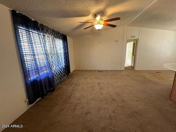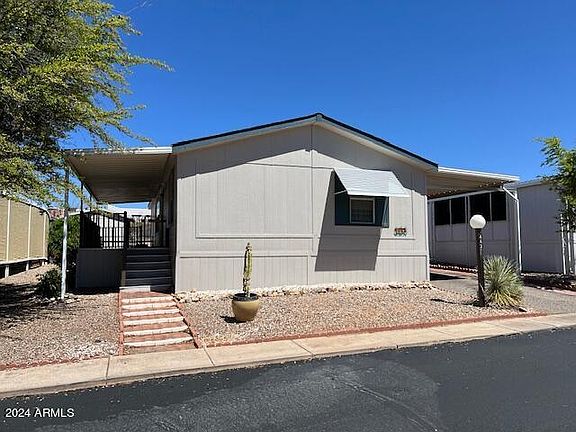 This home is move in ready with numerous updates, fresh paint inside, kitchen has a dishwasher, gas stove, refrigerator, hook up only for washer and dryer, outside has two sheds with electricity and one with a wall a/c unit, front deck, dog fenced in area, there is a nice covered patio in back, and a two car carport, hospital 1/2 mile away, shopping and food stores 2 miles away, park has many amenities for owners enjoyment. Come visit the home soon.