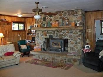 Finished det bldg:36x24 for game/rec area. 3+car det gar:48x30 w/wkshp:20x14+loft. Newer furnace & C/A. Mstr ste w/rock WBFP & skylight. Lg kit+DR w/built-in cabinets.FR w/rock WBFP insert.Lg rock patio & deck,on 3+acs,in town w/elbow room!