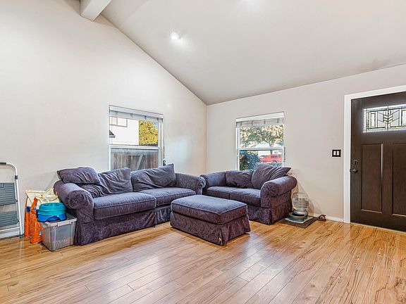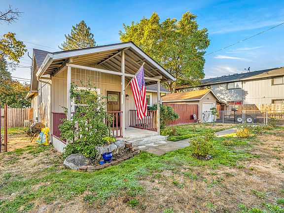 Cute entry level home or rental property. The current owners have made several upgrades in the last few years including new roof in 2018, water heater in 2022, refrigerator 2022 and deck in 2020. Three Bedrooms 2 baths with an open great room. Peninsula kitchen has spacious eating bar and gives room for lots of counter space. There are high vaulted ceilings which give the home an open feel. Outside is a large backyard, great for kids and pets; a detached garage & carport, and the front yard has chain-link fencing all around. Located walking distance to downtown this home is well suited for a casual lifestyle.