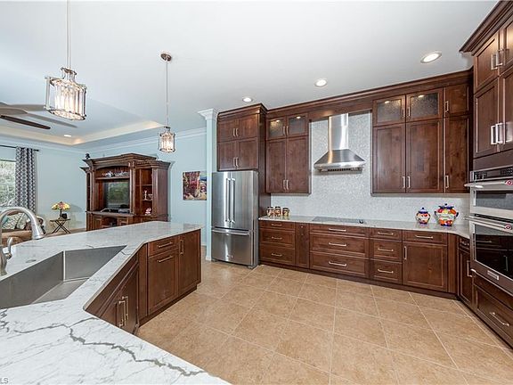 Great family neighborhood! Only about 5 miles to the beach. This home is offered under it's appraised value! Formal living room, dining room and large family room. Absolutely fabulous kitchen! Large counter space and open space can accommodate any family gathering and holiday parties. Master suite is privately located on the main floor. Den/office is also located on the first floor and can be used as an extra bedroom. Second floor has 3 bedrooms, second family room and two full baths. The resort like style of the lanai offers privacy with a custom built pool, spa and outdoor kitchen. Has a 3 car garage. Conveniently located near popular restaurants and stores.