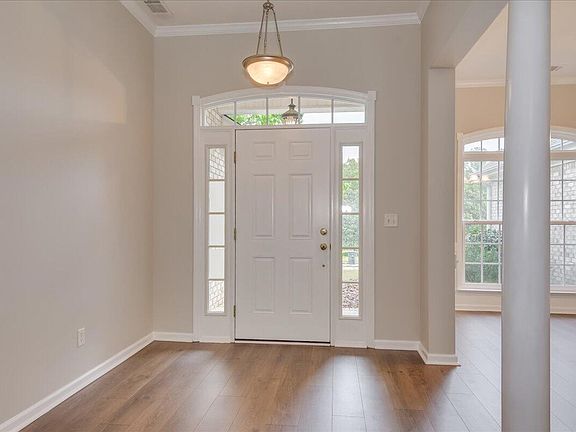 This freshly painted 4 Bedroom/2 bath, split floorplan ranch features new laminate flooring throughout the main living areas and new carpeting in the bedrooms. The great room has 10' ceilings and a gas fireplace. The dining area has beautiful wainscoting. There are trey ceilings in the primary bedroom and the primary bathroom has a double vanity, a garden tub and a separate shower. Enjoy the outdoors on your lovely patio in the large, level fenced-in backyard. NEW ROOF. TWO CAR GARAGE. Conveniently located to I-20, shopping, restaurants and more.