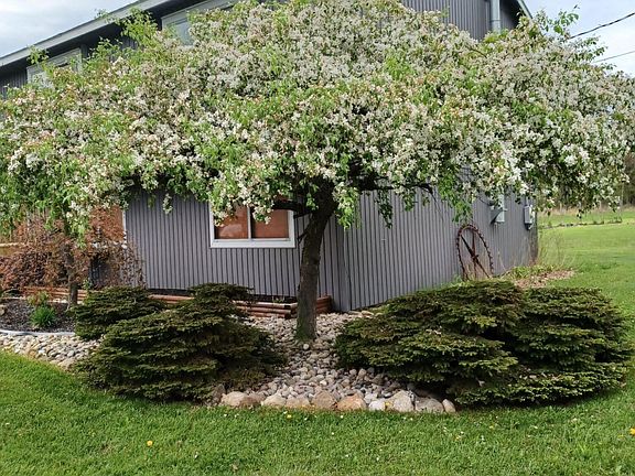 Great property and well-maintained home with just over 20 acres. This 3 bedroom, 1.5 bath, updated home has a completely finished basement with wood burning stove and built ins, new appliances in 2021, 2 car insulated garage and barn. Front and back decks with perennial gardens and fruit trees. School taxes shown without STAR.