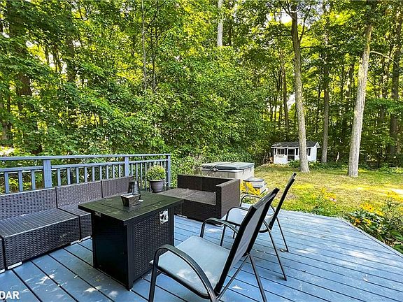 Exceptional family home in desirable West Bayfield area sitting 218 ft deep treed lot on the outskirts of town abutting Environmentally protected Forests with trails. Convenient shopping, schools and short run to 400 for easy commuting. Enjoy ski hills of Snow Valley just minutes away. This 5 bedroom 5 bathroom home with 4788 finished sq ft has been beautifully updated to include a chefs gourmet kitchen with professional style appliances and separate butler area for food prep and plenty of storage. Your guests will enjoy the cozy fireplace while hanging out at the Island. When it's game time head downstairs to the rec room with wet bar, pool table and second fireplace. Once heading upstairs you will find the family room with 3 piece bath above the garage would also be great 6th bedroom or perfect for private nanny quarters. The expansive master boasts a reading nook and luxurious ensuite bath as well as substantial walk in closet. All set well back of the road. The irregular shaped yard offers plenty of privacy with expansive deck, soothing hot tub and cute garden shed Fully fenced and treed. Recent updates in 2023 include flooring, painting, new gourmet kitchen and laundry.