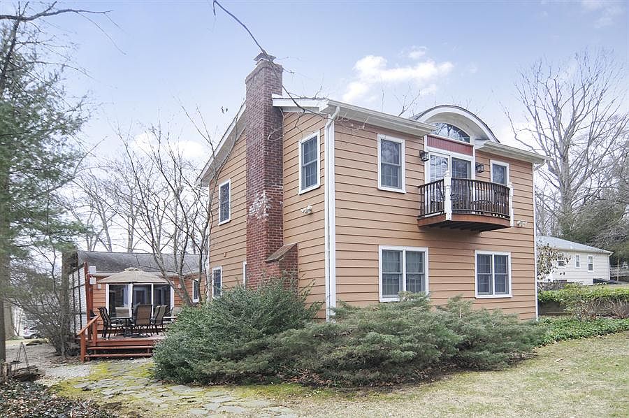 This recently renovated Colonial home is set on exceptionally deep property. The entry foyer leads to an expansive living room with cathedral ceiling and wood-burning fireplace. The newer eat-in kitchen has a breakfast bar, and a banquet-size formal dining room has skylights and sliding glass doors to an outdoor dining area on the deck. A private bedroom wing includes two first floor bedrooms, a private staircase leading to spacious master bedroom with vaulted ceiling and balcony overlooking the landscaped 237' deep property. Newer master bath features a 2-story ceiling, stall shower and whirlpool tub. A finished basement, 2-zone central air and heat, a very private, heated 16x32' in-ground pool round out the features. Numerous renovations were completed in 2004. This is a must-see home.