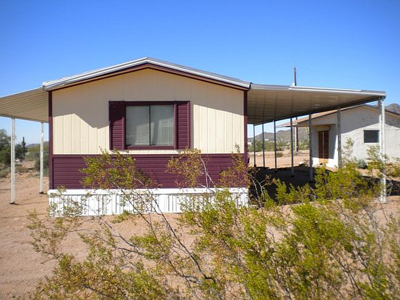 Split floor plan and glorious mountain views! 3bed/2ba manufactured home with full length awnings on both sides pump house with room to play on a 1.25 acre desert lot. Open living area washer dryer hook-ups inside and storage in pump house. Just remodeled! Brand new kitchen: cabinets, counters, stainless appliances, laminate flooring throughout This beautiful land is Not fully fenced so watch your animals! Water is by a delivery system to be set up and paid for by tenant, tenant pays all other utilities and must maintain garbage service.