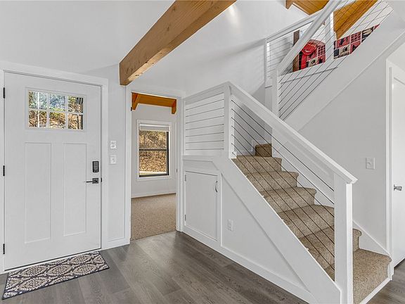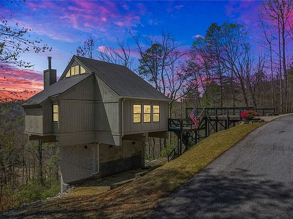 Welcome to 443 Whispering Falls Drive! This striking cabin is tucked away at the base of the Blue Ridge Mountains in Northern Pickens County -close to the South Carolina/North Carolina state line. These stunning views of the surrounding landscape are more than memorable. Just experience one sunset at this location, it will stick with you for years to come. The sunset picture is amazing, but you really should come experience it in person! Whether you are looking for a primary home for daily living or a secondary home that can provide vacation style accommodations, then look no further. This unique property overlooks Hole 10 of The Rock Golf Course - opportunity & beauty surrounds you. From The Rock Golf Club & Resort website about the recent renovations the course has recently undergone: "The Rock Golf Club & Resort was purchased in May of 2017 & immediately started by installing TifEagle Bermuda greens, reinvigorating the course, & renovating the Pro Shop &The Rock Restaurant & Bar. The Rock now boasts the best greens in the Upstate, with the facilities & views to match. The golf course comprises 18 challenging holes on 112 acres with breathtaking vistas, with the signature #8 tee box overlooking one of the loveliest waterfalls in the area." Take a look at additional course pictures & information on their website. Through the front door of the home, you will be met with a freshly updated, open concept living space. Kitchen has a lovely view overlooking the mountains. New granite countertops & stainless steel appliances have been installed - these are a great complement to this space. The dining space is open to both the kitchen & the living room. All rooms have recently received a fresh coat of paint that absolutely brightens up the entire home! LVP flooring has recently been installed in several rooms. Living room has wood finished vaulted ceilings, a wall full of windows overlooking the mountain views & finished with a woodburning fireplace - imagine relaxing in this cozy space & enjoying a cup of hot coffee & a book!! House boasts 3 bedrooms, to include the large loft on the second story. Loft can accommodate several beds/sleeping quarters or can be set up for additional living space. Two full bathrooms have been completely remodeled - new flooring, new custom vanities & new walk-in showers with sliding glass doors. Curious about the location? Looking for easy access surrounding well known cities or possibly a slower pace of life? Then pay special attention to this location -Table Rock State Park is just a short 6 min drive away. Downtown Greenville, SC is less than an hour drive away - there is just so much to say about Greenville, SC, but it truly is a foodie paradise. You can very easily be to the well-known Lake Keowee in less than 30 mins. Are you a Clemson fan & love attending Clemson sporting events? The University of Clemson is approximately 40 mins away! What a location! Lakes offer boating & water recreation experiences. Mountains offer year-round adventures through hiking & exploring. Sassafras, the highest point in South Carolina, has a breathtaking observation tower & is a great destination point for locals & visitors. This destination can be reached in less than 30mins from the property. Beautiful vacation destination spots like Highlands, Cashiers, Brevard & Asheville (NC) are all reachable in less than 1hr & 30 mins! This property provides a very unique opportunity with privacy, location & condition of the cabin - come explore adventure!