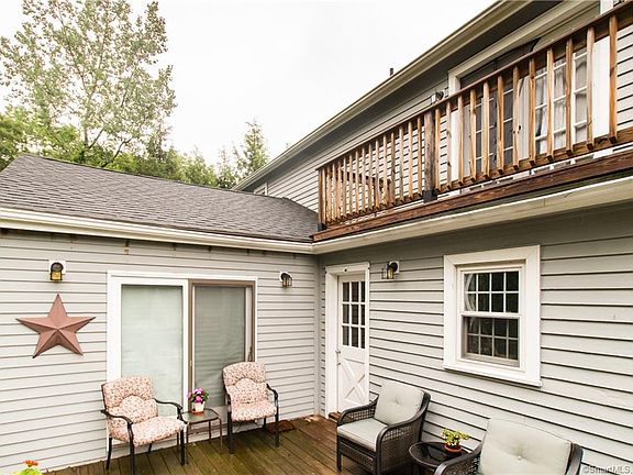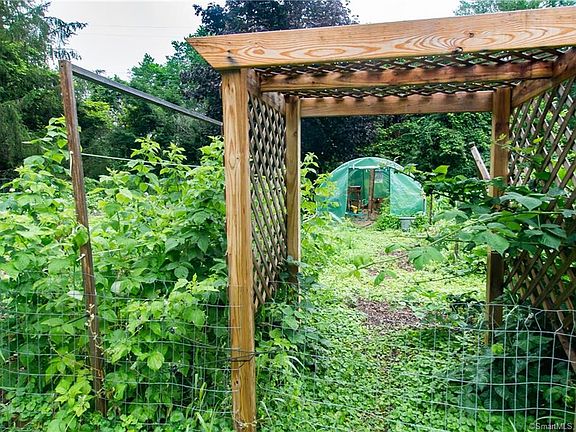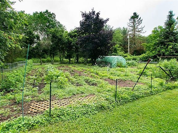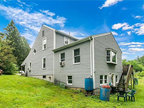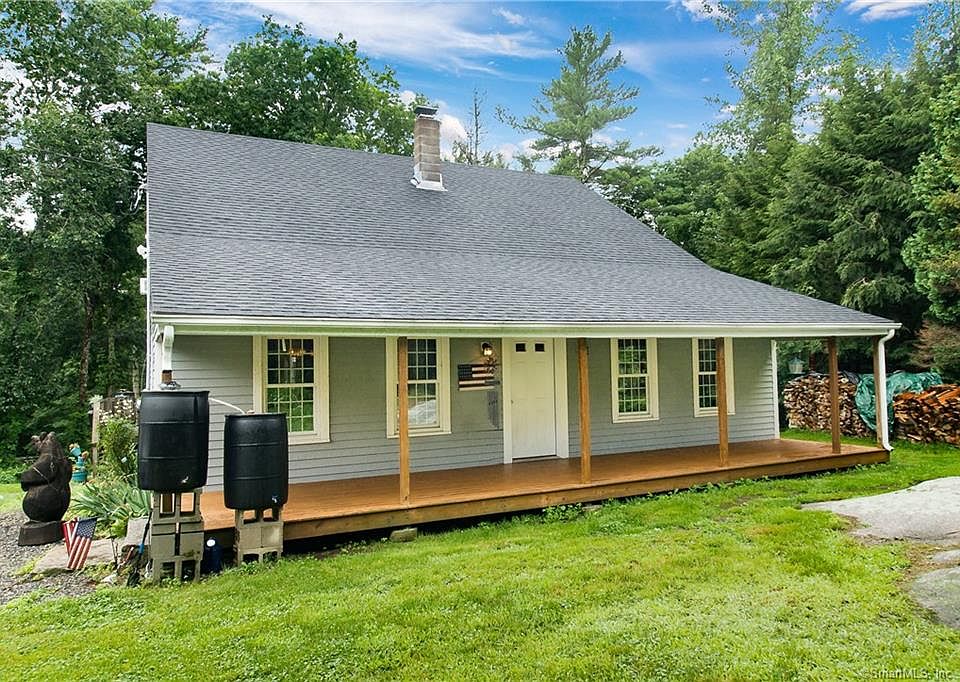 Gorgeous home situated in a perfect country setting that features a babbling brook connecting to a pond and scenic views from your back deck or front porch year round! You have the ultimate in homesteading and the work has been done for you to start your own self sustaining farm. Enjoy the cultivated gardens, fruit trees, and fully stocked chicken coop. The gardening is set up with its own well run by solar pump and there is large shed for storage and a workshop area in the walk out basement. The interior is sure to impress with an open floor plan, balcony and beautiful vaulted wood ceilings. The generous sized kitchen boasts an abundance of cabinets, stainless steel appliances, breakfast bar, and custom concrete backsplash. Woodstove in the living room that's open to the dining and kitchen. Flexible living space as the family room is currently used as a master suite with the 1st floor bedroom with full bath is used as a craft room. There is a half bath and laundry with storage also on the main floor. Going upstairs there are 2 more bedrooms both with access to the full bath with one bedroom having an outside balcony overlooking the backyard. Many updates include new electrical system that comes equipped with generator interface, well water storage tank amongst others that were done 3 years ago including new roof, kitchen, and bathroom updates. Don't miss out on this gem in beautiful Voluntown! More Pictures coming!!! Chickens can convey with the property or will be removed if requested.