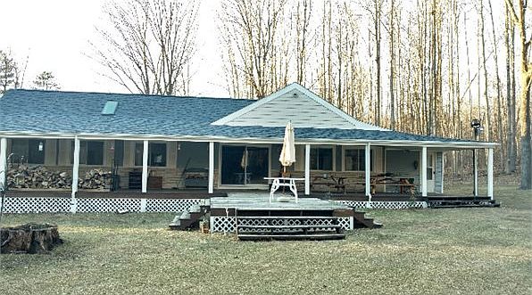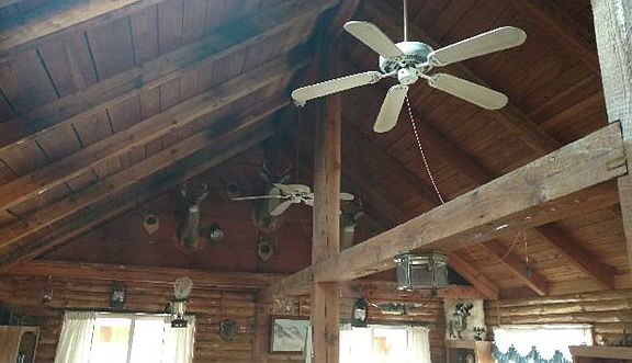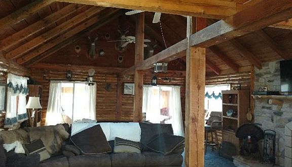 Over 1700 sq. ft. in this country home. This home consists of a timber frame, log style, hand crafted interior. Beautiful wood work through out. Large open kitchen and living area. Wood burning fireplace to relax in front of after the days work has been done. This home has plenty of old world comfort. Excellent hunting on the 31+ acres. Timber consists of Oak, Pine, Maple. 2 large wildlife ponds that attract all of the Deer and Ducks. The home sits over 1/2 mile off the road for absolute privacy