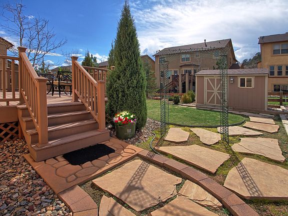This stunning meticulously maintained home centrally located in desirable University Oaks community feels brand new. Deluxe updates include new carpet throughout, cherry cabinets and paint. Gleaming natural hardwood floors welcome you to open great room with its cozy gas fireplace and custom built-in for television or decorative artwork placement. The adjacent kitchen is spacious and functional with ample cabinets, counter space, pantry and computer desk area. Walk out onto composite deck, with bluff views and immaculately landscaped yard with tremendous flagstone walkways and storage shed. The upper level landing boasts built-in book shelves and art niche. Enter the 2 room master retreat where private sitting room is separated from sleeping quarters with a 2 sided gas fireplace. Adjacent 5 piece bath features oversize soaking tub and extra-large walk-in closet. The 2 secondary bedrooms, full bath, storage area complete this living area. Un-finished basement offers plenty of room for expansion or storage. The home boasts a newly finished 3 car garage, insulated, dry walled, with finished floors. Additional bonus is the new roof, with class 4 shingles. This awesome like new property is located in the heart of Colo. Springs with convenient access to UCCS, hiking, biking dining, shopping and Hwy 25 for an easy commute to anywhere in town or Denver. Don't miss this stunning home, complete and ready for you to enjoy with little effort.