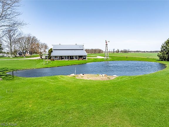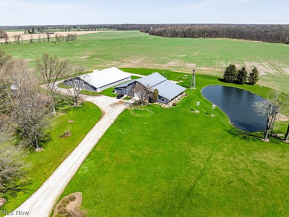 Looking for a 5-acre property with an unique barn-dominium lifestyle? This exceptional gem boasts a stocked pond, 40x64 heated workshop w/ 20' eaves, 1/2 bath & 22x14 overhead door, a 30x64 unheated space, and separate 105x92 pole barn. Open concept home offers 3 beds, 2 baths, an office, high ceilings, and large windows creating a bright & airy atmosphere. Custom Suhr Kitchen Cabinets, Corian Countertops, island & extra bar seating, with dining area. Luxurious master suite with walk-in closet, walk-in shower, access to a 60ft covered porch w/ hot tub & scenic pond views! Oversized laundry room & unfinished attic space for storage. Fully stocked pond perfect for fishing enthusiasts! Separate pole barn has stone floor. This property is a must-see! Security system. *Everything in home/barns is for sale...ATV, tools, & lots of collectible antiques! Everything but the clothes & pictures is available for additional $60,000!