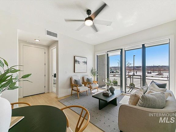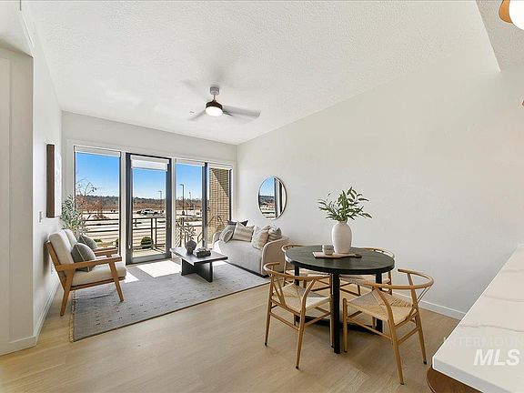Introducing the Murray Lofts, a masterpiece by Zach Evans Construction in the highly sought-after Harris Ranch neighborhood of Northeast Boise, Idaho. This vibrant community blends urban energy with natural serenity, perfectly positioned along the Boise River Greenbelt and at the foot of the stunning Boise Foothills—offering endless trails, wildlife sightings, and outdoor recreation right outside your door. Just minutes from the bustling heart of Downtown Boise and the cutting-edge Micron campus, Harris Ranch delivers the ideal mix of convenience, culture, and connectivity. Loft 109, a ground-level gem, offers seamless single-story living with effortless elegance and accessibility. Step onto your private south-facing patio, flooded with warm natural light that creates a bright, welcoming retreat. Inside, discover Zach Evans Construction’s signature superior craftsmanship: premium finishes, soaring ceilings, and thoughtful design that elevate everyday living to extraordinary. Exclusive Murray Lofts amenities enhance the lifestyle, including a sparkling pool, secure bike storage, a convenient dog wash station, and elevator access to the expansive rooftop deck and clubhouse—your front-row seat to sweeping sunsets, city lights, and panoramic mountain views. Experience refined loft living in one of Boise’s most desirable enclaves.