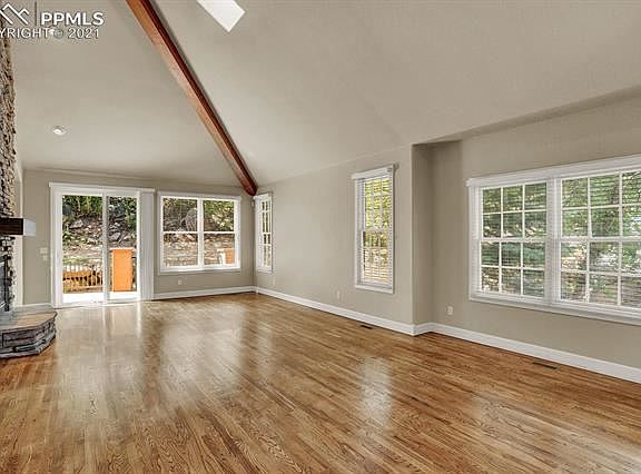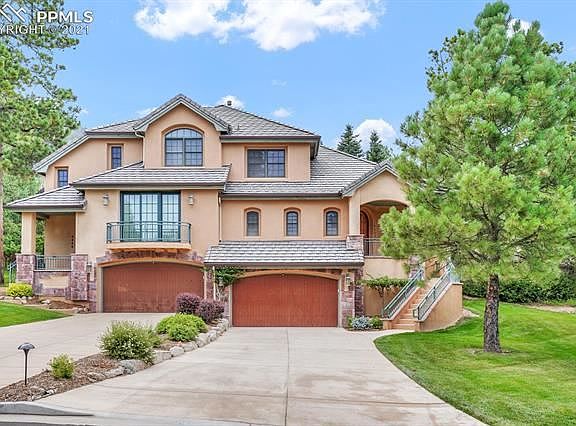 Nestled at the base of Cheyenne Mountain in the coveted Broadmoor Resort Community this townhome within the Villas at Log Hollow is ready to welcome you home to enjoy the Colorado lifestyle. From the covered front porch, you step inside to an open concept main floor with a great room featuring floor to ceiling stacked stone gas fireplace, hardwood wood floors, vaulted ceilings and access to the private, newly replaced, redwood deck. The updated kitchen features slab granite countertops, breakfast bar, mosaic tile backsplash, touch-less faucet & newer GE Profile stainless steel appliances including gas range. The master suite offers a spacious bedroom with tray ceiling detail, 2 walk-in closets appointed with built-ins from Closet Factory and a huge 5 pc bathroom with double vanities, large shower, jetted bathtub, tiled countertops & floors. The great room, kitchen, master suite, half bathroom and laundry are all located on the same floor for convenient living. The upper level includes a bedroom with beautiful vaulted ceilings, full bathroom with newer tile flooring, and loft with views of the trees and a few city lights. The loft has a closet and could easily be converted into a 4th bedroom. In the basement, there is a large family room with cozy gas fireplace, wet bar with built-in cabinets & beverage refrigerator, spacious bedroom, full bathroom with newer tile flooring and an unfinished room perfect for storage or hobby/workshop space. Enjoy seeing abundant wildlife, hiking the trails within the Broadmoor Resort Community or take a short walk to the Cheyenne Mountain Zoo. New redwood deck (2021), New Hot Water Heaters (2019), New tile roof (2019). Several photos are virtually staged with furnishings and décor to showcase what this home could look like furnished. Do not wait, YOUR time is now!
