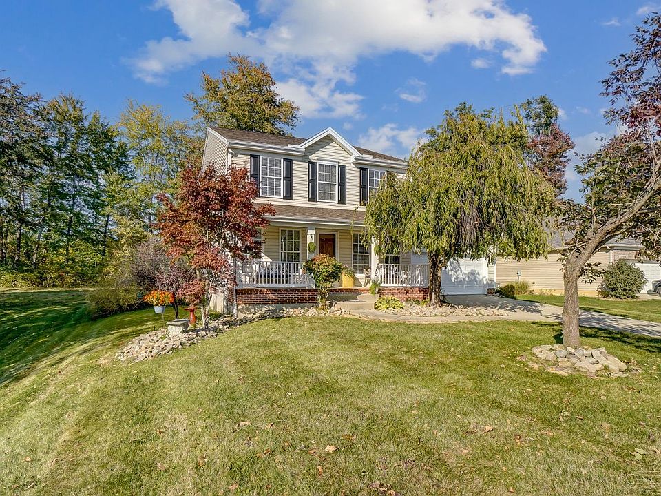 This meticulously maintained 4/2.5 home checks all the boxes! You'll enjoy over 2100 square feet of stylish living space on nearly a half-acre of lush, private wooded paradise on a tree lined cul-de-sac.Curb appeal is a standout feature of this property, making a lasting impression from the moment you arrive. Step inside and be greeted by gleaming hardwood floors that flow seamlessly throughout the home, handmade stone WBFP & the spacious kitchen creating an inviting & warm ambiance. The primary ensuite features peaceful greenery views, a large walk-in closet & relaxing tub that provides a great escape to soak away the cares of the day! Fitness/Nature enthusiasts will love the paved walking trails that wind through the neighborhood & enjoy the perfect blend of outdoor living with a pool, clubhouse, soccer field,& disc golf course all conveniently located w/in the community.'24- Bdrm & stairs carpeting, stove & microwave.'21-New furnace/AC.Quick jaunt to Jungle Jims, shopping & highway