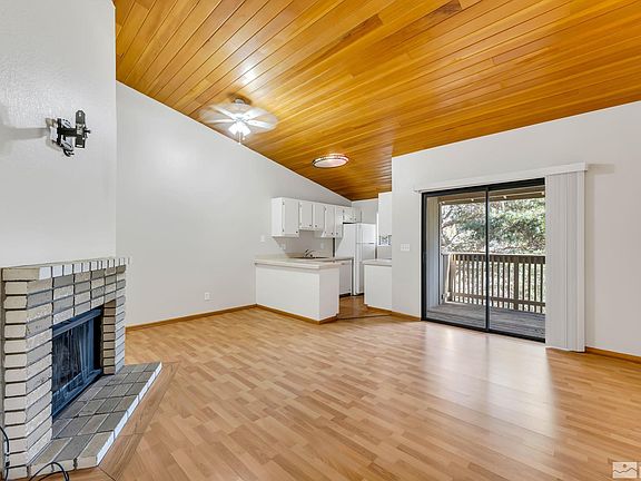 Welcome to Donner Creek Village! This charming community in Donner Springs features a park-like setting with a year-round creek and pond with ducks and geese, lush grounds and walking paths, tennis courts and two pools. 4430 Matich Drive has been lovingly cared for and the top floor location directly overlooks the pond and paths. You’ll love the low-maintenance lifestyle afforded by this 578 sf condo with 1 bedroom and 1 bathroom!, Interior features include: great room with vaulted ceiling, brick-surround fireplace and a slider to the covered deck from which you can enjoy beautiful views of the pond, grounds, walking paths and wildlife; living/family room; dining area with ight/fan combo; bright kitchen with electric range, built-in microwave, refrigerator, tile countertops, laminate flooring and a breakfast bar; spacious bedroom with views of the mountains and a large closet; and a crisp and clean bathroom with laminate flooring, tile-surround tub/shower combo and vanity, laundry area with washer and dryer and plenty of storage. Community features boast wonderfully maintained common areas centered around the beautiful Donner Creek and fantastic amenities with walking paths, seating areas, two pools and tennis courts. This unit includes an assigned, covered carport and water, cable TV, internet/wi-fi, snow removal and garbage are included in your HOA dues!