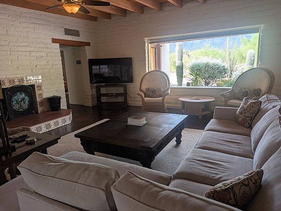 Experience upscale desert living in this beautifully furnished 3-bedroom, 2-bath home nestled in the scenic foothills of Tucson. With 2,728 square feet of open living space, this hilltop retreat offers breathtaking views of the city skyline, rugged desert terrain, and surrounding mountains. The gourmet kitchen features granite countertops and stainless-steel appliances, perfect for cooking and entertaining. Step outside to enjoy a private pool, cozy fire pit, and serene outdoor spaces designed for relaxation. This home comfortably sleeps up to six guests and includes all utilitieselectricity, water, gas, and high-speed internetfor a seamless stay. Located just minutes from shopping, dining, and entertainment, it offers the perfect balance of privacy and convenience. Available starting January 1, 2026, with a one-month minimum stay.