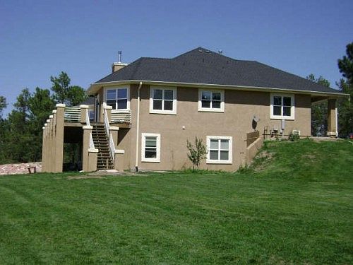 View website: http://4430valeroad.AgentMarketing.com - A MARVELOUS COUNTRY ESTATE PRIVATE AND SECLUDED YET MINUTES AWAY FROM POWERS CORRIDOR, THIS FIVE ACRE PROPERTY CONSISTS OF AN OPEN RANCH STYLE HOME WITH AN ATTACHED 3 CAR GARAGE AND ANOTHER DETACHED 50 x 39 OUT BUILDING & MOUNTAIN VIEWS, QUALITY ABOUNDS THROUGHOUT TILE FLOORING, OFFICE /FORMAL FAMILY ROOM, POWDER ROOM, FORMAL DINING, SPACIOUS GREAT ROOM WITH KITCHEN AND EATING NOOK, AMPLE MASTER BDRM WITH ADJOINING 5-PC BATH, WALKOUT AND LAUNDRY ALL ARE ON THE MAIN LEVEL, DOWNSTAIRS IS A FAMILY ROOM HOME THEATER,WITH WET BAR AND WOOD BURNING STOVE. DOWNSTAIRS 4 BEDROOMS WITH JACK&JILL BATH, WALK OUT TO THE BACK PATIO. STUCCO, TWO HOT WATER HEATERS, RADIANT IN-FLOOR HEAT ON THE MAIN LEVEL, WATER FILTER, CHERRY KITCHEN CABINETS, AND SPACIOUS DECK AND PATIO IN THE BACK OF THE HOME WITH VIEW OF THE FRONT RANGE.
