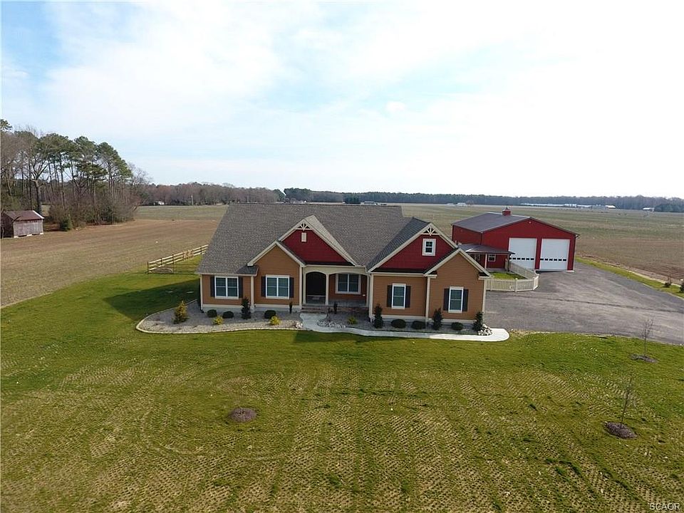 Here's your opportunity to own your own personal "Southfork". Custom Bay To Beach Home was built in 2016 and gently lived in. 3BR/3 full baths and a half bath, almost 4 acres of impeccable from the home to the pole building. Quality construction with 2x6 walls and conditioned crawl space. This home offers granite, stainless appliances, hardwood, tile & all the upgrades Bay To Beach offers inside and out. Sit on the screened porch with your morning coffee or watch the sunset with a glass of wine. It has been professionally landscaped with irrigation. Night time up-lighting and completely fenced back yard, great for children or pets. Got hobbies? The massive 40x60 drive through heated pole building is perfect for the camping enthusiast, the classic car collector or the Harley owners. Bathroom rough ins are included and added storage has been built in.