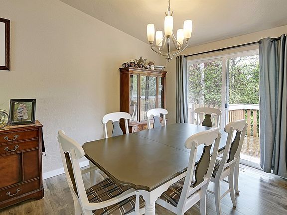 You'll love this home. It is in great condition, updated in all the right ways. The spacious living room features vaulted ceilings, a wood burning fireplace and large window. The pleasant dining room has vaulted ceilings, new flooring, doors to the barbecue sized deck. Fantastic kitchen, completely updated with new cabinetry, flooring, appliances, quartz counters, deep chef's sink, and breakfast bar. Large master bedroom and its own updated 3/4 bath. Each of the additional bedrooms is good sized. The main bath has been completely updated, with jetted tub in tiled surround, granite counters. Large family room on the lower level also has a fireplace and doors to the backyard. Convenient 1/2 bath & laundry also on the lower level. Large, fenced backyard features large deck, patio, gardening shed, play structure, fruit trees. The home has a 4 year old roof, new heat pump & air conditioning. Excellent location, in a quiet cul-de-sac but convenient to amenities.