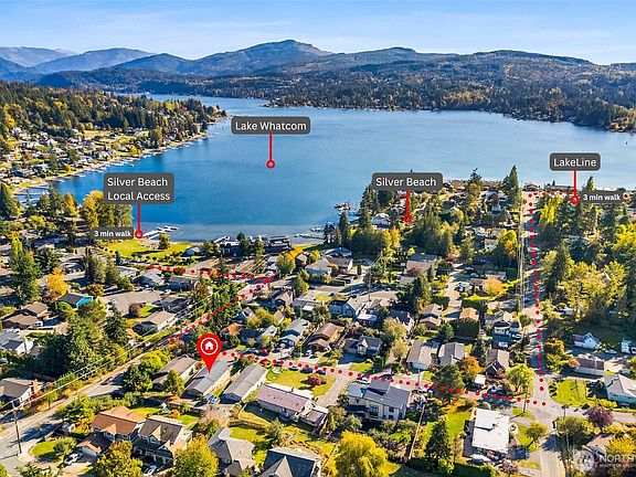 Sunny south-facing home in desirable Silver Beach! One block from Lake Whatcom and down the street from the local coffee shop and Northridge trail. Main level features a renovated kitchen with gorgeous hickory cabinets, open living area, two bedrooms, full bath, and wraparound deck. Downstairs offers a spacious primary suite with oversized walk-in closet, full bath, and second living space or bonus room. Large two-car garage off the alley provides excellent shop or storage space. New LVP flooring and interior paint throughout. Fully fenced backyard adds privacy and a space for your pup to play. 1% lender credit offered by Movement mortgage. (Ask Listing agent for details)