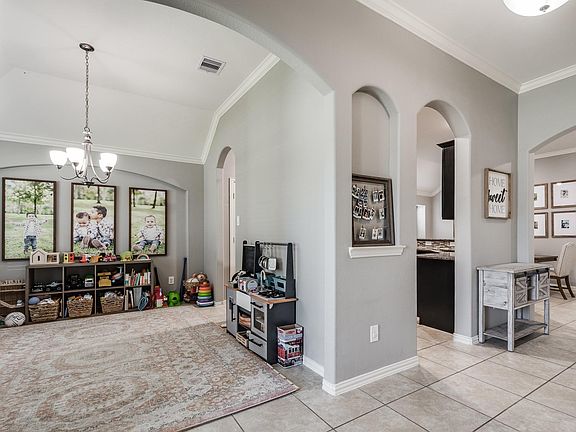 Granite countersOpen kitchenFormal diningTile backsplashFenced backyardArched doorwaysBreakfast area