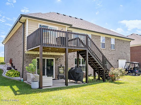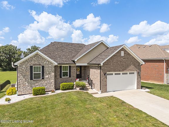 Welcome home to this stunning all-brick & stone ranch with a large finished walkout basement, an attached 2-car garage, & a BRAND NEW ROOF! Located in the desirable Indian Springs neighborhood, you'll love the privacy & park-like views from the beautiful deck and patio overlooking approx. 4.5 acres of green space. Inside, enjoy vaulted ceilings, gorgeous hardwood floors, tile in baths & entry, jetted tubs, walk-in showers, & a spacious primary suite with tray ceiling & large walk-in closet. The kitchen features stainless appliances, granite counters, beautiful white cabinetry, & a breakfast bar. Additional highlights include a mudroom with extra laundry hookups behind the shiplap. The fully finished walk out basement features a huge family room, 4th bedroom, full bath, finished workout/utility room with a garage door to the backyard. Great location near the Hidden Acres golf club. Sellersburg mailing address with Jeffersonville city services & Greater Clark Schools. Don't miss this beautiful homeschedule your showing today!