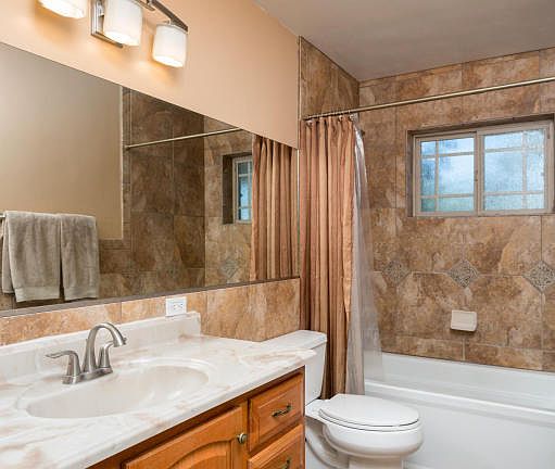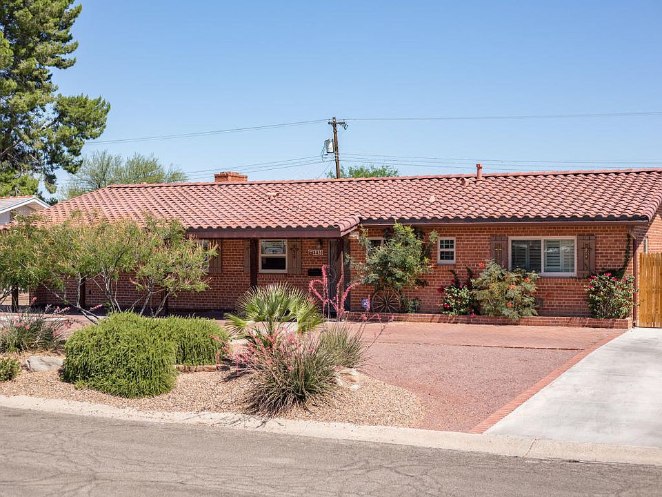 Updates galore! This 3BR/3BA red brick home is ready for a comfortable Tucson summer with the sparkling pool, dual pane windows, AC and ceiling fans throughout. Upgrades include remodeled main bathroom, remodeled 3/4 bath with easy access to the pool, ceramic tile throughout, and tile roof to name a few. Separate den is currently used as a large 4th bedroom with it's own bath. Relax on the large porch while enjoying the huge yard and mountain views. Convenient to the University of Arizona and all of central Tucson. Don't miss this gem!