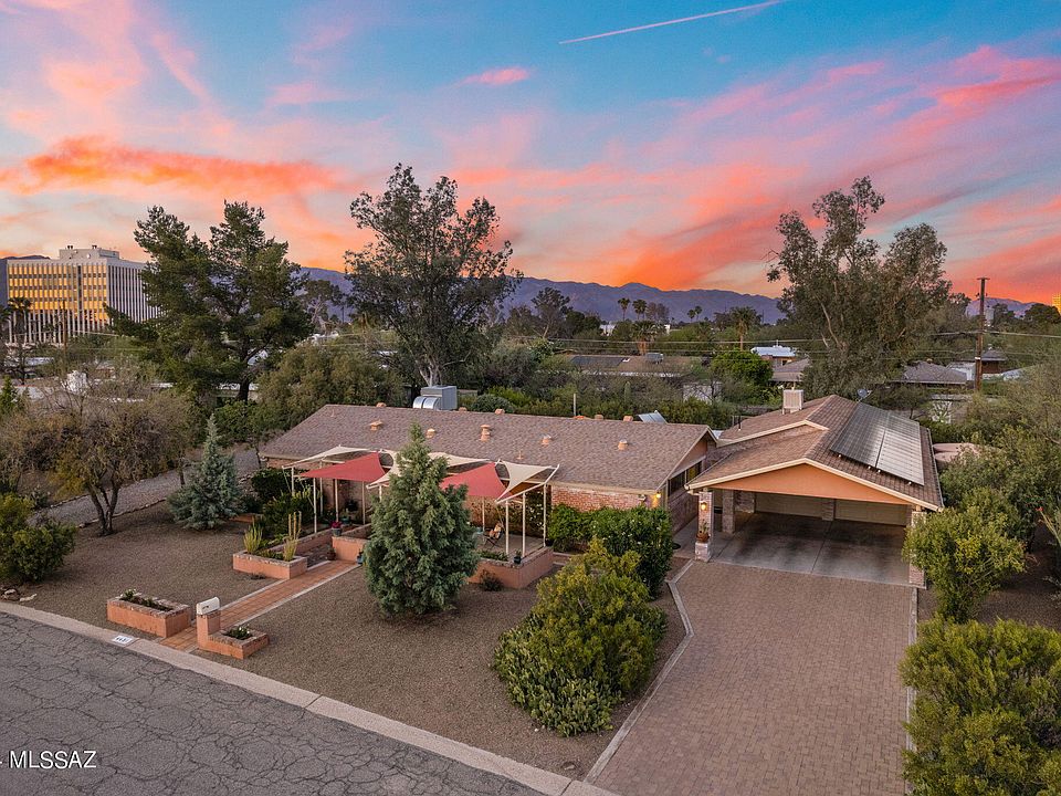 Experience luxury living at its finest with this expansive estate, nestled in the serene Colonia Allegre neighborhood of Tucson. This remarkable property spans a half-acre lot and boasts two homes, providing versatile living options. The main residence offers a resort-like ambiance with seamless integration of indoor and outdoor spaces, ideal for both relaxation and entertaining. The thoughtful floor plan includes large, open areas that flow naturally to the outdoors, enhancing the comfort and elegance of home life. The fully equipped garage is a standout feature, perfect for those who value a well-designed and robust workspace. It presents endless possibilities for use, from a creative studio to a deluxe workshop. Adding to the home's appeal is an owned solar electric system and solar water heating, complemented by an efficient water harvesting setup and an advanced grey water plumbing systsem, allowing you to make a significant green impact from day one. (NOTE: It was designed to easily add more living space...think family room and 2 additional bedrooms).