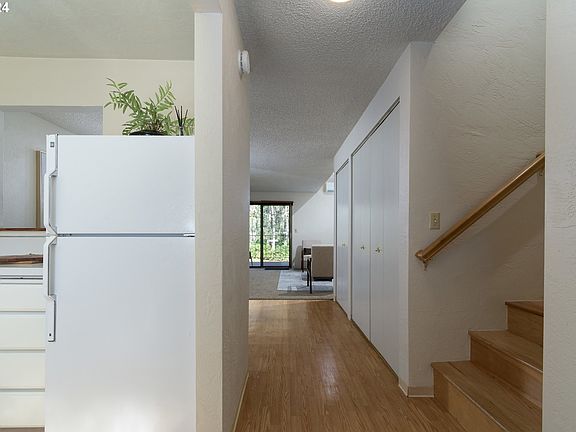 Wow...huge price reduction! Enjoy the NW lifestyle and a truly serene setting in this well-maintained and nicely updated 2 bedroom, 1½ bath townhome at Wild Oaks! Fully-equipped kitchen with range, refrigerator and dishwasher opens to the spacious living and dining area with a slider out to the newly rebuilt, private deck that looks out to beautifully landscaped grounds, mature trees and wildlife. The light-filled stairwell with hardwood floors and clerestory window leads to 2 bedrooms with laminate flooring (1 w/ walk-in closet and the other w/ double closets) plus a small nook and both bathrooms have been recently updated with new vanities. A 3-zone ductless heat pump system was installed in 2022 for super-efficient heating and cooling plus the HOA replaced the roof and painted the exterior in the last few years. Also features in-unit laundry w/ washer/dryer and plentiful storage plus a detached garage for 1 car and a designated parking spot in the lot. This complex offers a lovely community center which includes kitchen, recreation/meeting area, sauna & large outdoor swimming pool. The dues also include exterior maintenance, grounds, water and trash pickup. All this plus conveniently located in SE Eugene near running trails, bus line, hiking, bike paths, schools, restaurants and shopping. What an incredible value!