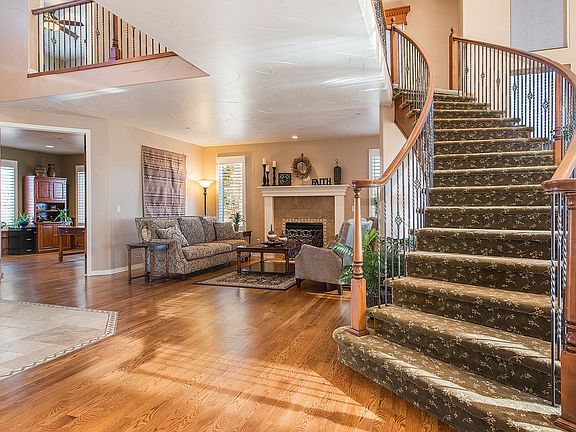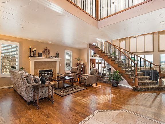 Unbeatable Price!!Incredible lot with views of Castle Rock/Pikes Peak*Main floor study*hardwood flooring*Gourmet kitchen*Viking stainless appliances*2-story family room*Exquisite wood work and attention to detail*walk-out basement with fire-pit*fantastic theater system in family room and master bedroom*
