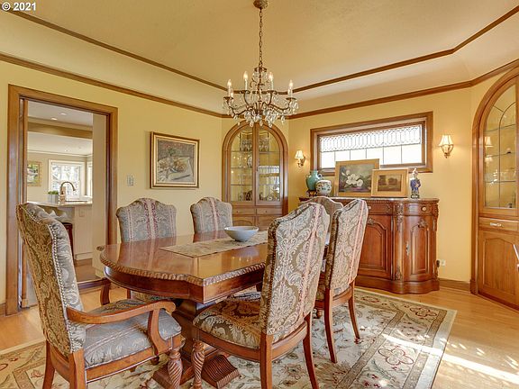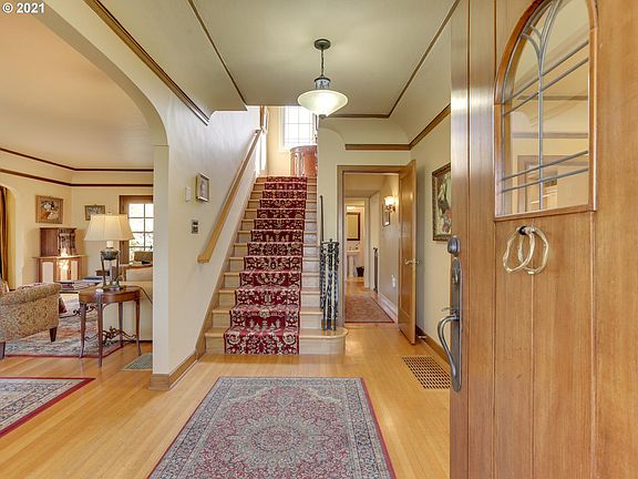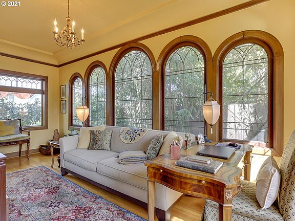 Stately Alameda Mediterranean, a rare and precious opportunity to live on of one Portlands prettiest streets. Features include, Formal entry, open staircase, large formal living and dining rooms, sun room, updated kitchen w/den, main floor guest quarters, Primary suite w/bath, walk-in closet and fireplace. Oak floors, 4 fireplaces, ornate iron work, 2 car garage. Prof.landscaped/design w/one of a kind yard, outdoor fireplace and kitchen. West facing, situated on the Alameda Ridge.