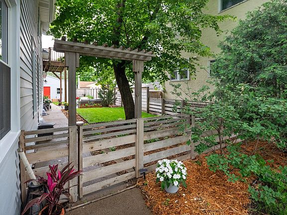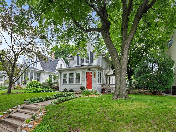 Prime Kingfield location, 2 bed, 2 bath home w/ spacious living & entertaining spaces, oversize 2 car garage. Main level features enclosed 3 season front porch, living room & dining room featuring oak flooring, large kitchen, fantastic remodeled mudroom w/ walk-in closet. Kitchen features walk-in pantry, loads of cabinet/counter space, all new stainless appliances in 2022. Upper level primary bedroom w/ gas fireplace, large organized closet. Addt'l bedroom adjacent to upper level deck w/ built in pergola. Fully renovated bath w/ preserved historic clawfoot tub. Basement family room & second 3/4 bath. Most windows updated over time, w/ most recent updates to bedroom windows/patio door, stairwell windows & front porch windows in 2024. Low maintenance vinyl siding. In addition to upper deck, enjoy patio & fire pit area in fully fenced yard. Steps to restaurants & amenities along Nicollet, 46th & Grand. Easy walk to Lake Harriet, Rose Gardens, Bandshell. Easy access to bus line & freeway.
