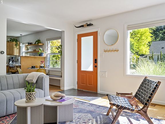 This delightful 1950s Portland bungalow blends vintage charm with modern comfort in the beloved Creston-Kenilworth neighborhood of SE Portland. The home’s authentic charm shines with its original hardwood floors and built-in storage throughout, complemented by a range of thoughtful upgrades. Recent improvements include fresh exterior paint, a new furnace and hot water heater, AC, and Nest thermostat. East-facing sunlight bathes the charming kitchen and living room. The kitchen balances character and functionality with a striking 1930s vintage stove. The main level offers two bedrooms with lush garden views and a full bath. Upstairs, solitude awaits in your private primary suite, complete with an ensuite bathroom, soaking tub, and generous walk-in closet. The lower level provides opportunities for flexible living, perfect for a home office, art studio, potential guest quarters, a playroom, or fitness space. Hobbyists and outdoor enthusiasts will love the garage’s workshop style, featuring wood-paneled walls, inset lighting, and bonus storage above. Step outside to your private, fully fenced backyard oasis, professionally designed by Fusion Landscape. This serene space includes low-maintenance native plantings, a custom fire pit, and organic garden beds with an accompanying garden shed. Established blueberry and strawberry bushes yield fresh fruit nearly year-round, while a mature tree anchors the yard with spectacular spring blooms, vibrant summer shade, and autumn color. Location is unbeatable. Enjoy a short walk to Creston Park with trails, playground, and pool, and top rated Creston Elementary (9/10 on Great Schools). Close by to Trader Joe’s, and beloved neighborhood spots like Keeper Coffee and Café Rowan, Foster-Powell’s restaurants, breweries, and shops. With a Bike Score of 98 and excellent transit options, this home is both connected and community-oriented. This Portland gem won’t last long. [Home Energy Score = 3. HES Report at https://rpt.greenbuildingregistry.com/hes/OR10183493]