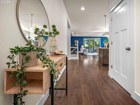 West Portland Oasis. Step into your dream home from the expansive covered porch and be wowed by soaring ceilings and a bright office/bedroom just off the entrance. The spacious gourmet kitchen is perfect for hosting, featuring top-notch appliances, endless cabinets & counters, and a vast island bar. The open dining/living area showcases a beautiful gas fireplace and a giant slider leading to a balcony, ready for your gas BBQ and outdoor entertaining. The main level’s spa-like primary suite is a dream, with stunning walk-in shower, ensuite bathroom, handy laundry, and a custom closet. From your private retreat, enjoy sunset views on the lazy balcony. The lower level features vast 10 ft ceilings and a bonus/family & media room with access to the private, fenced backyard full of potential. Live large with two more bedrooms, a big full bath, second laundry room, oversized 2-car garage and tons of storage. Extras like the climbing wall, 2-inch wood blinds, custom stone shower floor and hot tub are just icing on the cake. Located in popular West Portland Park, one of our city’s most serene and laid-back neighborhoods, you’ll be surrounded by nearly 20 forested acres, yet just minutes to downtown Portland, and popular Multnomah Village & Lake Oswego. Enjoy nearby restaurants, shopping, specialty stores & more, where you’ll have the perks of city living with a small town vibe. Close proximity to I-5, OHSU, PCC Sylvania, & Lewis & Clark College. Built by a top Northwest builder, this home is ready for its next lucky owner!
