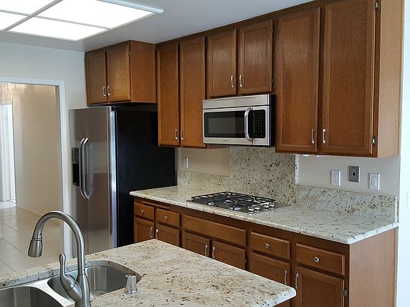 This is a single-story home has a flowing floorplan and is in move-in condition. This bright & airy home has no neighbor behind and located on a cul de sac. As you enter the home you will notice the tile entry, tasteful paint and vaulted ceilings. The home has an abundance of natural light, recessed lights, ceiling fans throughout and newer vinyl windows. This home features architectural elements and nice touches throughout this home: niche in the living room to display family photos/china and a cozy fireplace. The dining room has a large window to look upon the backyard. The kitchen features stainless steel appliances, granite counter tops and opens into the family room that is currently used as a playroom/study area. The slider opens to the backyard with grass, mature trees and even a white-picket fence. The master suite features the spacious bedroom, ceiling fan/lighting, mirrored wardrobe doors, dual vanities, a shower and a tub. Bedrooms two and three are spacious and share a full bathroom. The backyard has great exposure, natural lighting, a patio and a patio cover. In addition, enjoy views of the canyon, the quiet street/cul de sac location, numerous parks/trails and the top-rated schools. HOA fees include RV parking.