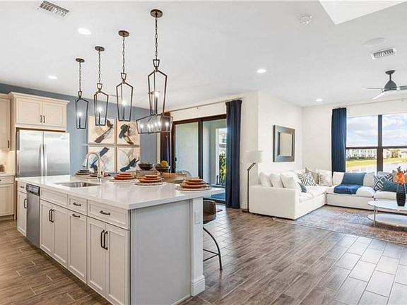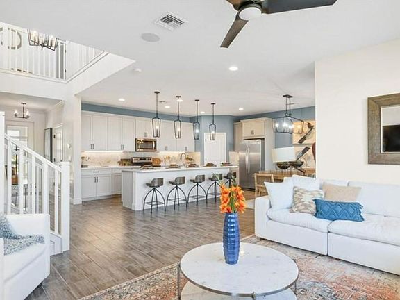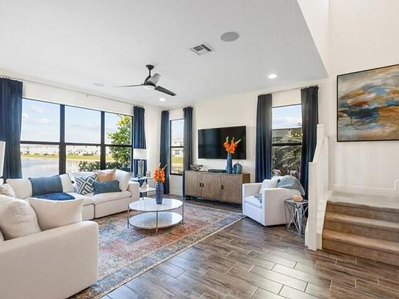 Lease this MODEL HOME FULLY FURNISHED townhouse Rapid Approval with 1,924 livable square feet and east exposure located in a newly built community in Lake Worth. This beautiful home has 3 bedrooms plus a loft, 2.1 baths, and high 9'4 ft main level ceilings with an open floor plan. A big gourmet kitchen with exquisite quartz countertops and an oversized walk-in pantry is ideal for entertaining and cooking. Extra storage space is available beneath the stairs and in the garage. There are hurricane-impact windows throughout, a large loft, and a luxury owner's suite upstairs with a large walk-in closet. One of the few floor designs with three triple-paned windows for an abundance of natural light Private covered lanai in the back. The house has a two-car garage and extra space for a golf cart.