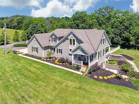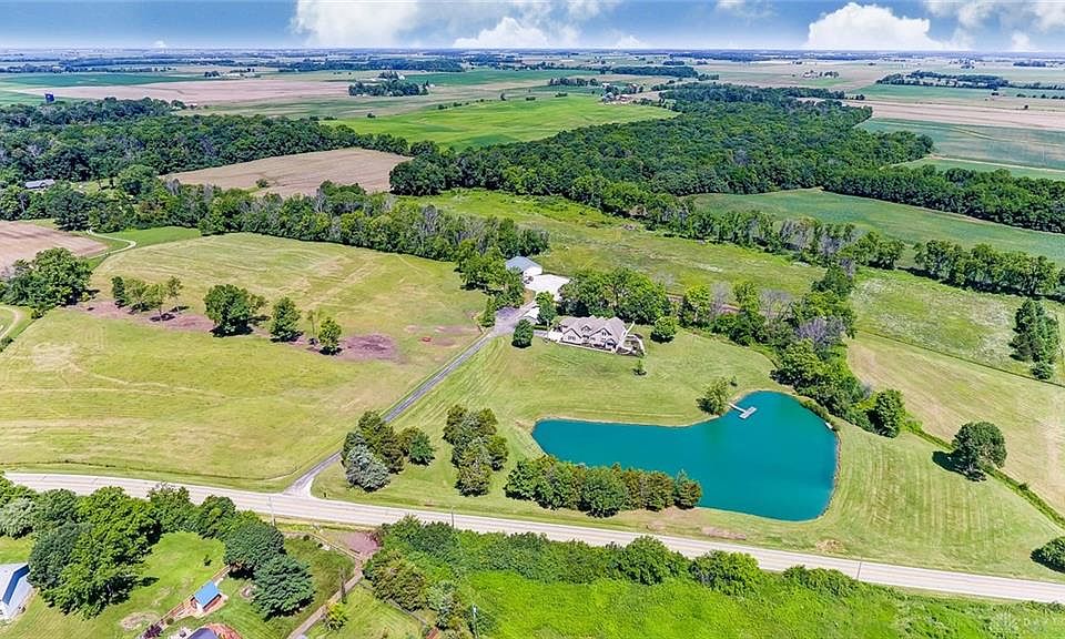 First offering of this home for sale, it was custom built for the current owner for his personal home 22 years ago. Gorgeous modern Farmhouse with Old World craftsmanship creates the perfect home on 28 acres and a pond! Open floor plan with *Stunning* hardwood floors, trim and staircase. Two walkouts lead to spacious back porch. Large kitchen with custom hickory cabinets and bay window breakfast nook, featuring a large pass though to main living area. A master suite wing includes an office, with access to back porch, master bath, plus lots of closet space. Upstairs is a loft area plus 3 large bedrooms and a full bath. Full finished walk out basement with a rec room, a kitchen and another full bath! 20 x 44 detached garage. Barn 36 x 56 with 16 x 56 lean-to. The one you've been waiting for!