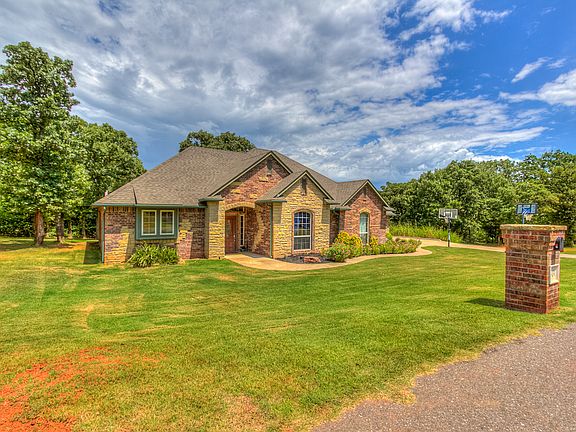 Peaceful Surroundings - Plenty of Space Between Homes - Stylish Interior - 3/4 acre Creek Lot! Designer tile throughout entry, living room & traffic areas - The only carpet is in the bedrooms! 3 bedrooms plus dedicated study with wood laminate floors. Upstairs bonus room (not included in sq ft) could be a hobby room, play area, office etc. Love home technology? This home has high-end built in speaker system with controls in most rooms, plus - projector & projection screen with surround sound included in the living room. The home is centrally "smart-wired" for cable, audio & internet to maximize the audio/video systems. The kitchen features stylish island with gas cooktop, built-in oven & microwave and plenty of cabinet & pantry space. Excellent curb appeal with handsome brick & stone, side-load garage & winding front walk. Surrounded by mature trees along a dry creek running through the east boundary. Only minutes from I-35 or City of Edmond. Check out the video & call today!