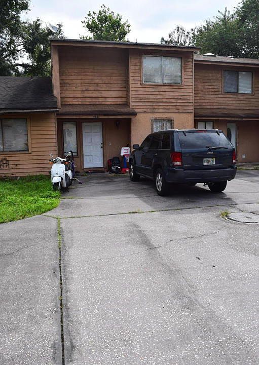 Investors opportunity. Very spacious and open floor plan with fireplace.Laminate & tiles flooring, Upstairs are the 2 bedrooms and 2 baths,sliding doors leads to small fenced backyard.Ac replaced on 2016.This town home needs some TLC.Home conveys in''as is''condition.no HOA fees No CDD. Great location close to highway, shopping and great schools.