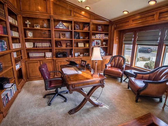 Immaculately maintained, upgraded single story executive home. This 4 bedroom and 3 bathroom home features vaulted ceilings, plantation shutters, wainscoting, hardwood floors, ceiling fans in each room, dual zone HVAC systems and Nest control, surveillance systems, monitored alarm system & a tankless water heater with a recirculating pump. The teak library with picture windows is the perfect location to relax and enjoy a good book. The formal dining room is perfect for entertaining or enjoying a family dinner. The Completely Remodeled Chef's Kitchen kitchen includes a subzero refrigerator, a Wolf 6 burner with grill cook top, a Viking range hood, 2 Bosch dishwashers, Dacor double ovens, and a warming drawer!
