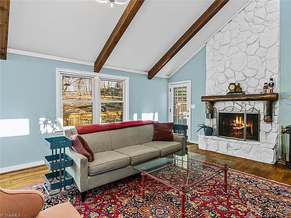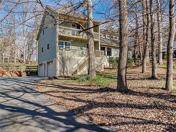 Charming home on picturesque wooded lot with numerous updates throughout. Light infused den with soaring ceilings and stone FP that opens to a large, bright updated kitchen with SS appliances, solid surface countertops and spacious eat in area. Upstairs primary bedroom has a private balcony area, walk in closet, huge laundry room and private bathroom with dual vanities. The backyard is truly a gardener's paradise.... enjoy the oversized deck, raised bed planters and various fruit trees plus plenty of room for lounging, grilling, and entertaining.